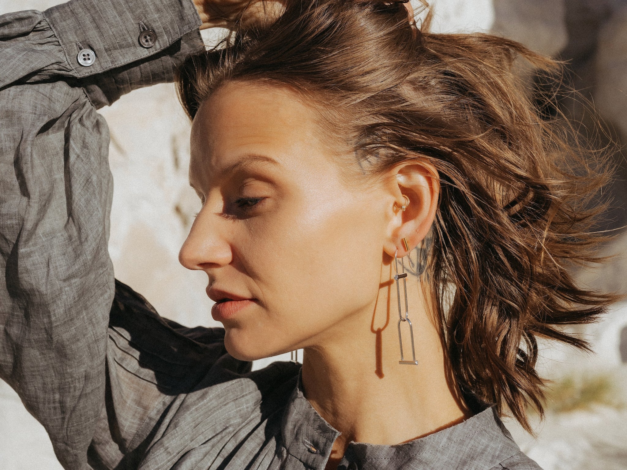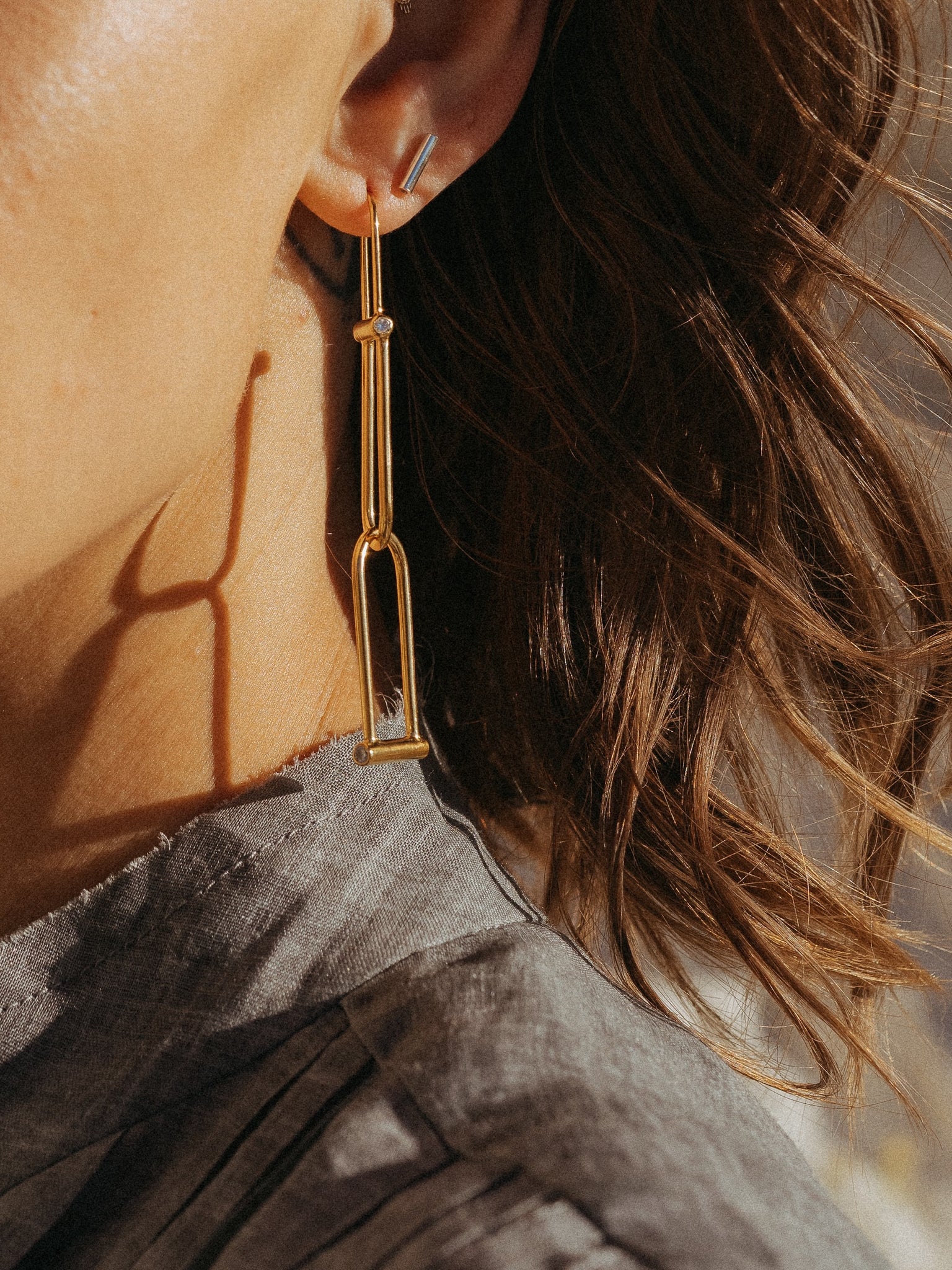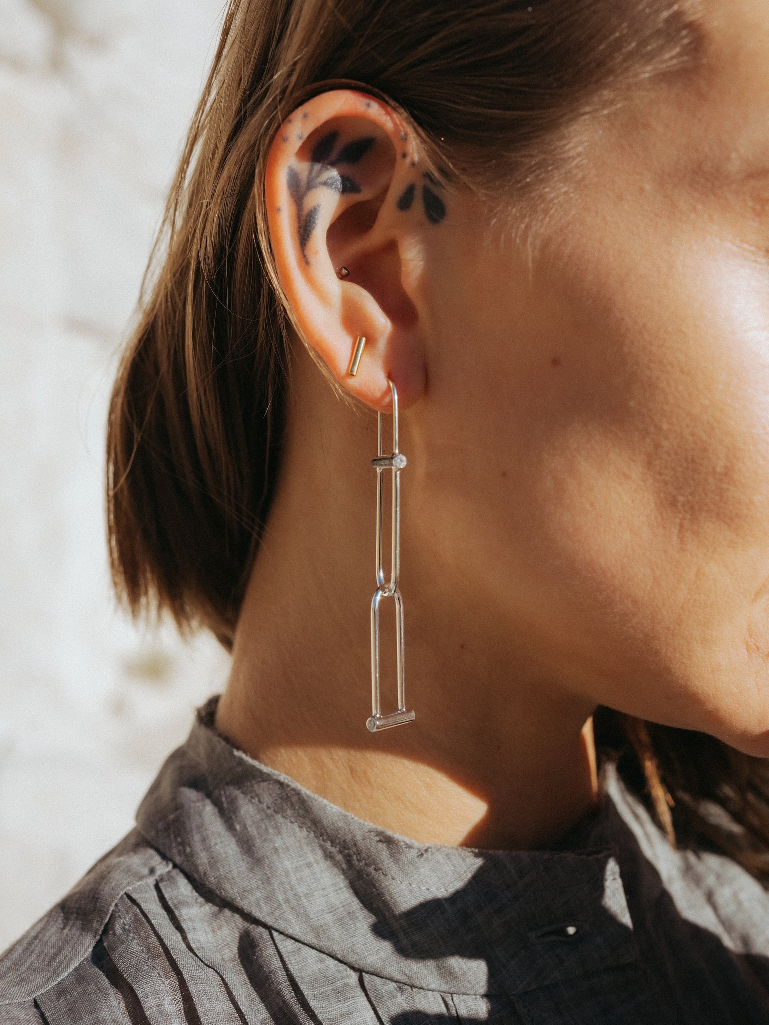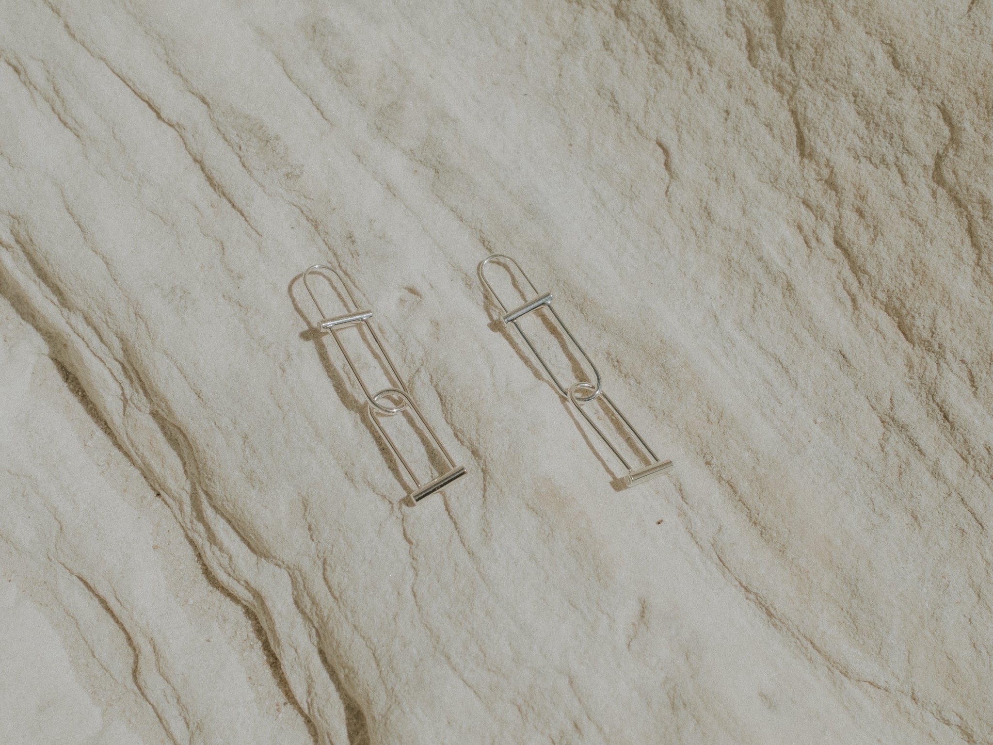 Two droplet shapes intertwined, co mingling, moving constantly - and featuring our classic tension-clasped ear wire.